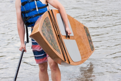 Submitted by Andy Magness on Thu, 07/25/2013 - 11:33To sweeten the deal, GUP is raffling off a custom made paddleboard! This 14 foot beauty (shown in the photos here) is hand-made by master craftsman Steve Hawthorne (Red River Wooden Boats). The craft is the perfect combination of durable, stable, light, fast, and oh so pretty. For each $10 you donate to the boathouse project, you will receive an entry into the drawing to be held on September 15th. In the event we haven't reached the minimum by then, we'll keep the raffle open until we reach 250 and do the drawing as soon as we get there!